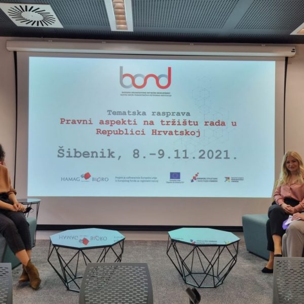 Hrvatska agencija za malo gospodarstvo, inovacije i investicije (HAMAG-BICRO) i udruga Mreža BOND organizirali su u Adriatic Business Centre Šibenik tematsku raspravu “Pravni aspekti na tržištu rada u Republici Hrvatskoj” za članove Mreže BOND. Ovo je druga u nizu tematskih rasprava koje su planirane u četiri regije Republike Hrvatske – sjevernoj i središnjoj Hrvatskoj, Slavoniji, Istri i Primorju te Dalmaciji. Rasprave su namijenjene članicama udruge Mreža BOND, a organizirane su u okviru aktivnosti Jačanja kapaciteta poduzetničkih potpornih institucija.